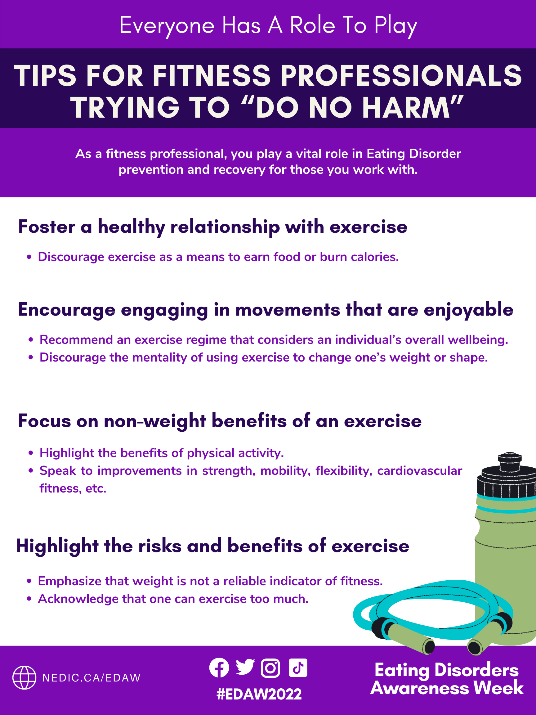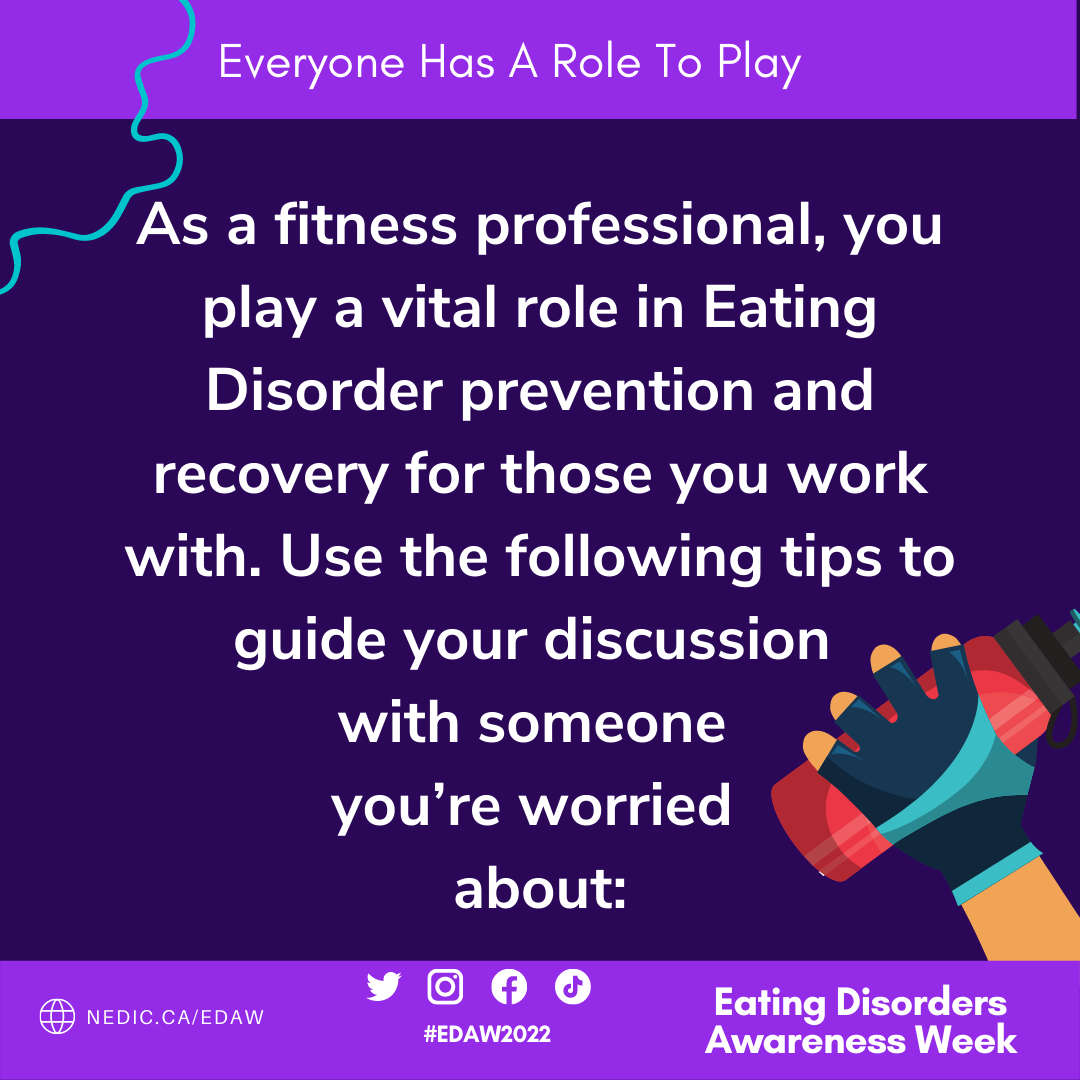 Save on your phone, take a screenshot and text to a friend, or print it to pin up around you. This handy poster shares some introductory tips for you to keep in mind as you look to support a client or athlete who might be experiencing disordered eating.