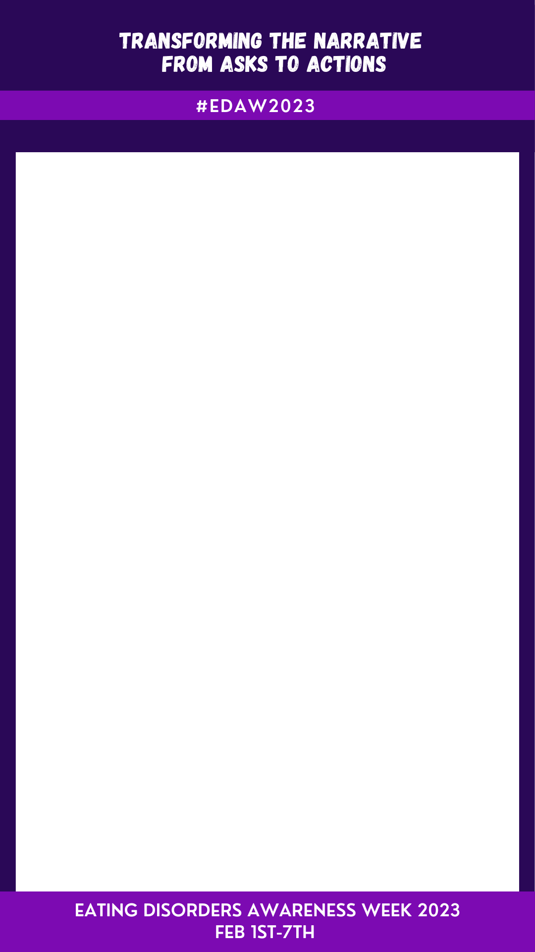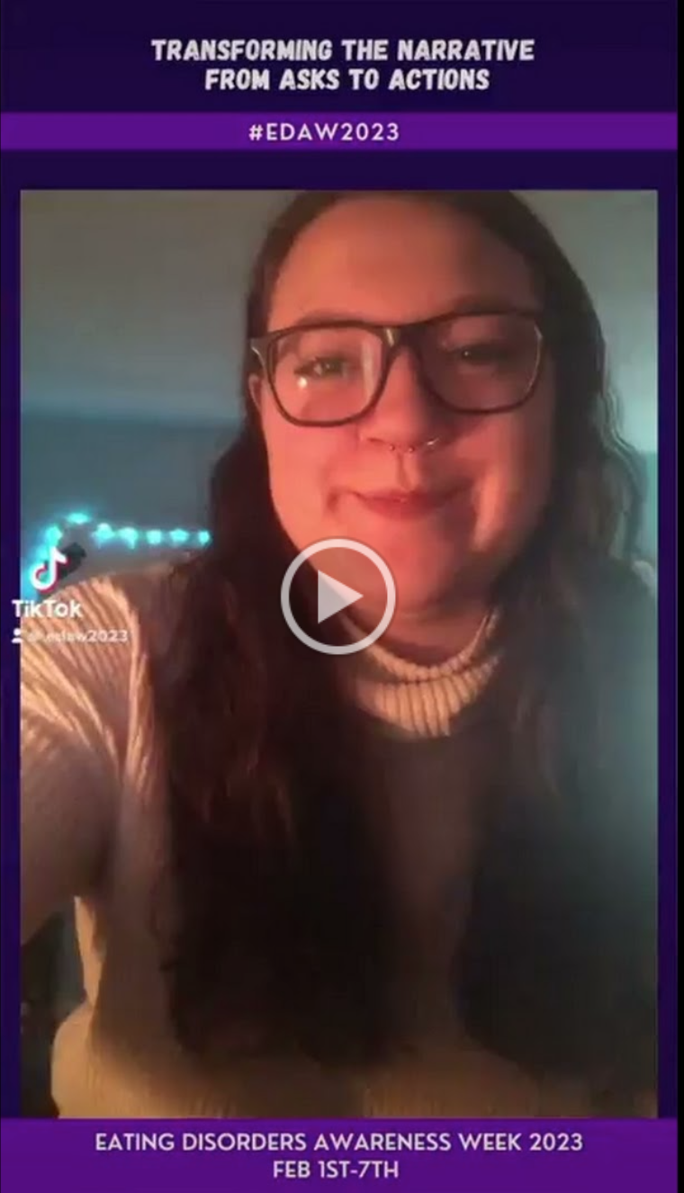 Share your story using the #EDAW2023 hashtag to tell people the type of action you want to see taken to help people affected by eating disorders in Canada.