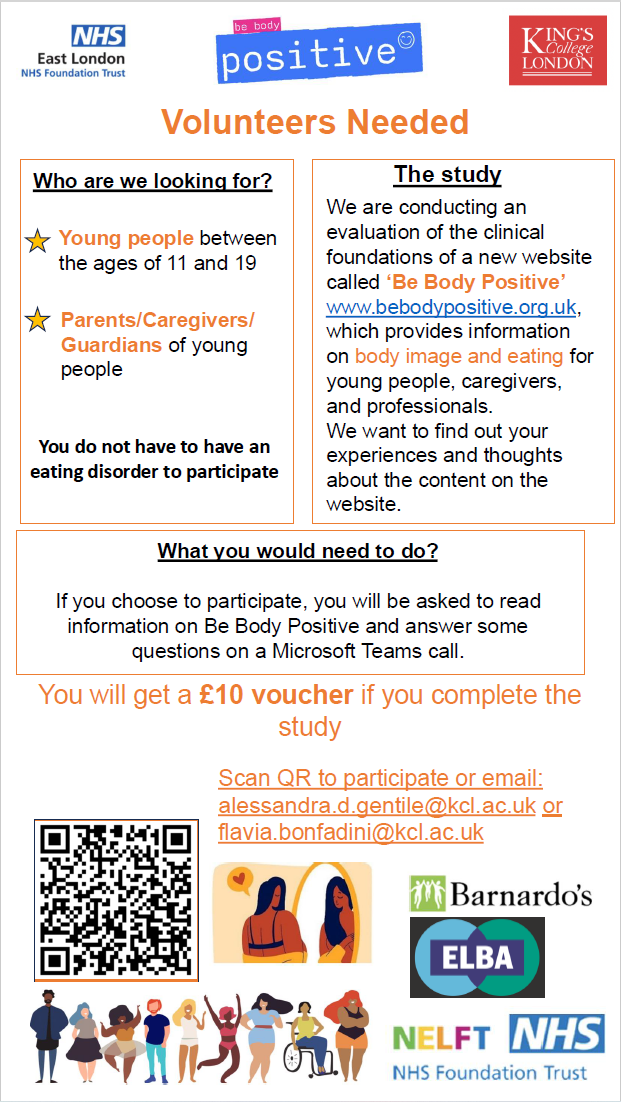 Researchers at King's College London in the United Kingdom are conducting an evaluation of the clinical foundations of a new website called ‘Be Body Positive’, which provides information on body image and eating for young people, caregivers, and professionals.